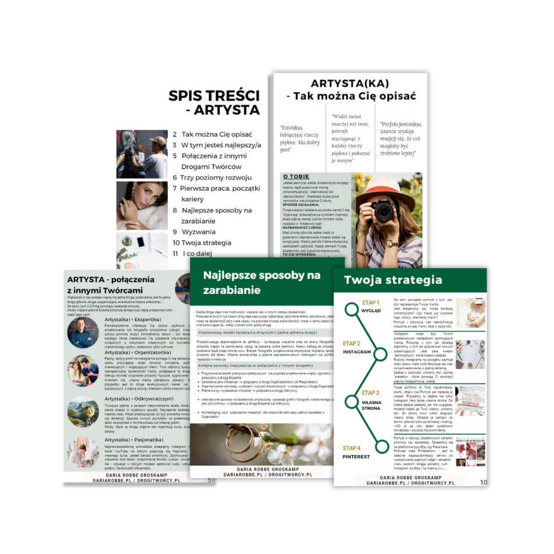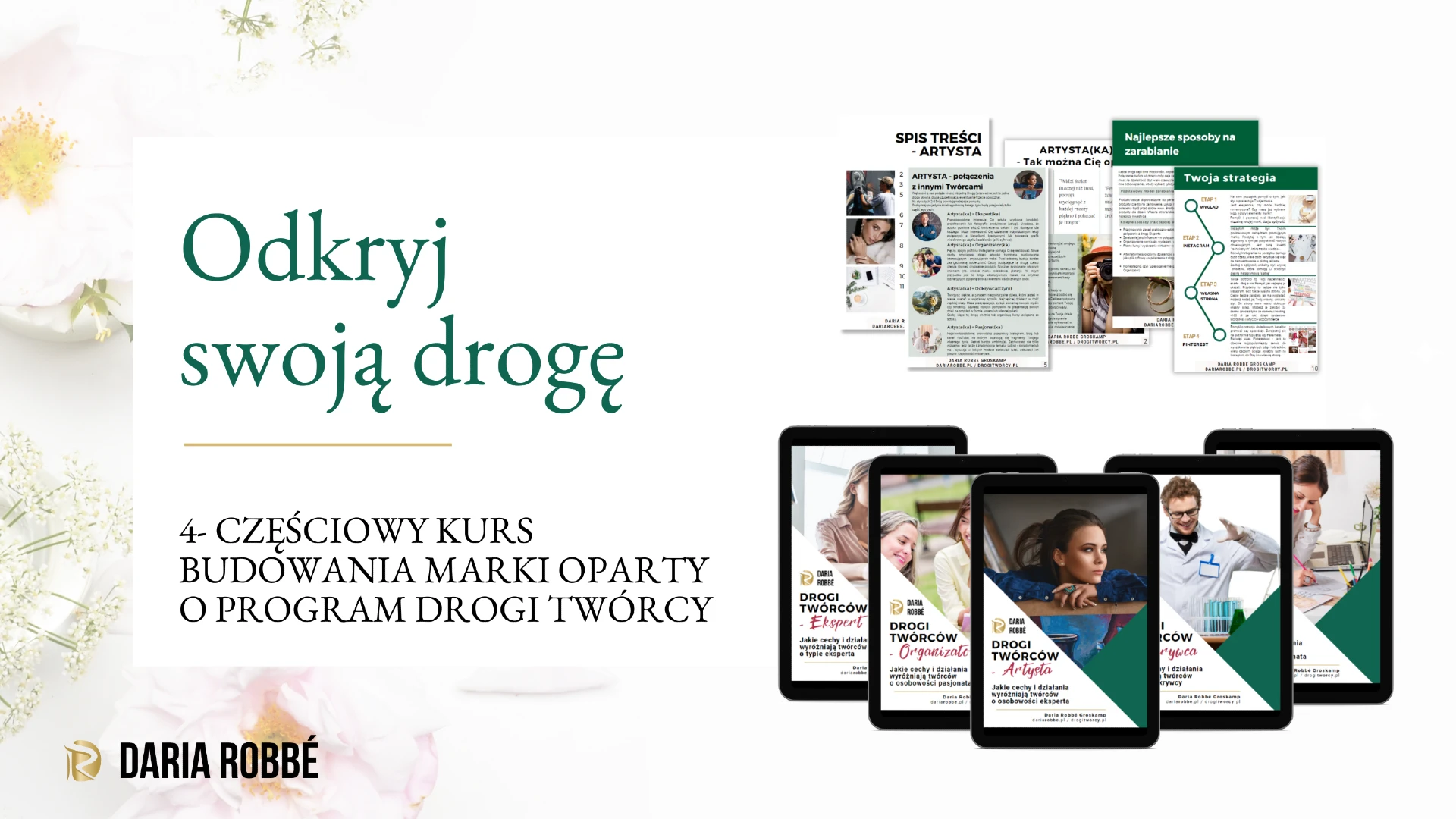 - BONUS 1: Pakiet 5 workbooków Drogi Twórcy z ćwiczeniami, które pomogą Ci odkryć własną drogę (wartość: 100 zł)